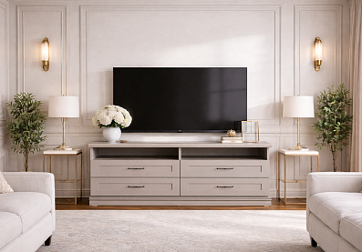 Тумба Кантри под телевизор с выдвижными ящиками Кашемир серый