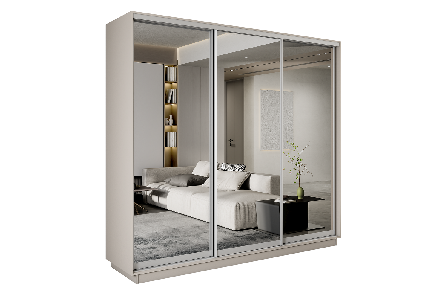 Шкаф-купе Премиум 3-х дв. 210х240х60, кашемир Зеркало/Зеркало/Зеркало